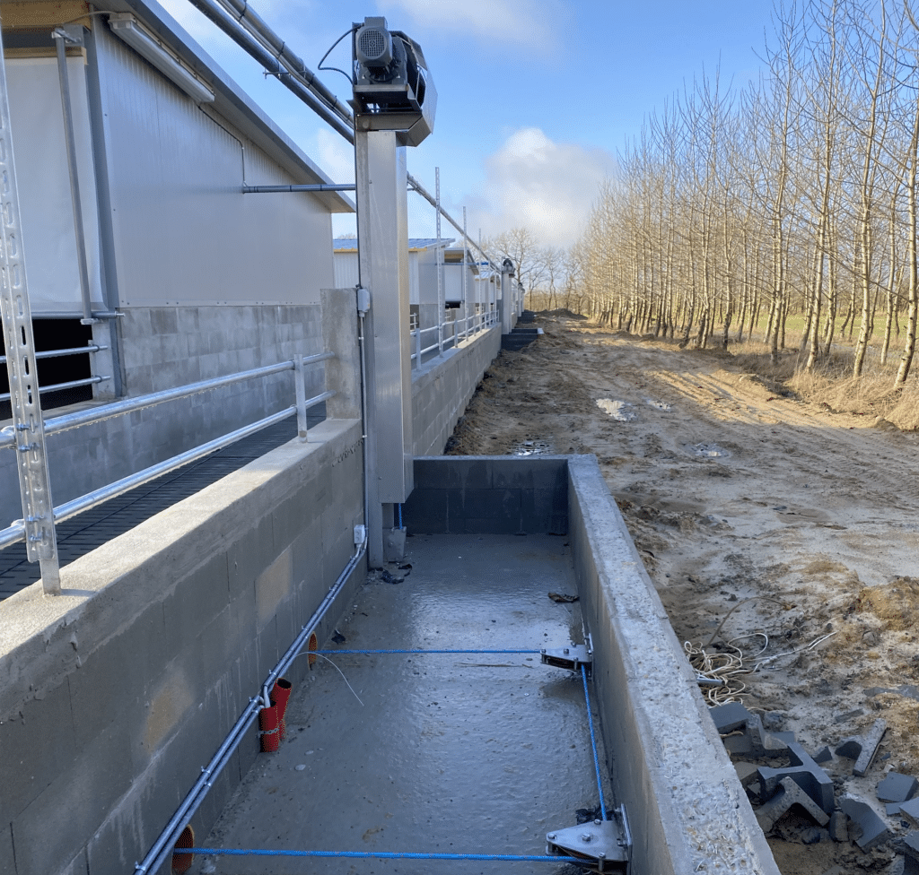 Anlægget er selvopstrammende via to trækstationer samt en kombination af tov (fleksibilitet) og wire (stabilitet). Det fungerer effektivt i stalde med eller uden halmstrøelse og sikrer hurtig fjernelse af gødning, hvilket reducerer flue- og ammoniakproblemer.