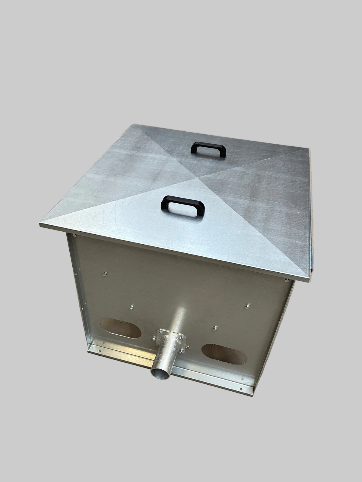 Påslag i rustfrit stål til mineral blanding til ko, gris eller fjerkræ. Alle mineral blanding man bruger, der er der tilsat salt, når salt kommer i forbindelse med frugtig luft så opstår der tæring i metallet ligemeget om det er malet eller galvaniseret så ruster det. Derfor er det oplagt at bruge et rustfrit påslag i stedet for, når prisen er den rigtige. Vores påslag er inklusiv endeleje.